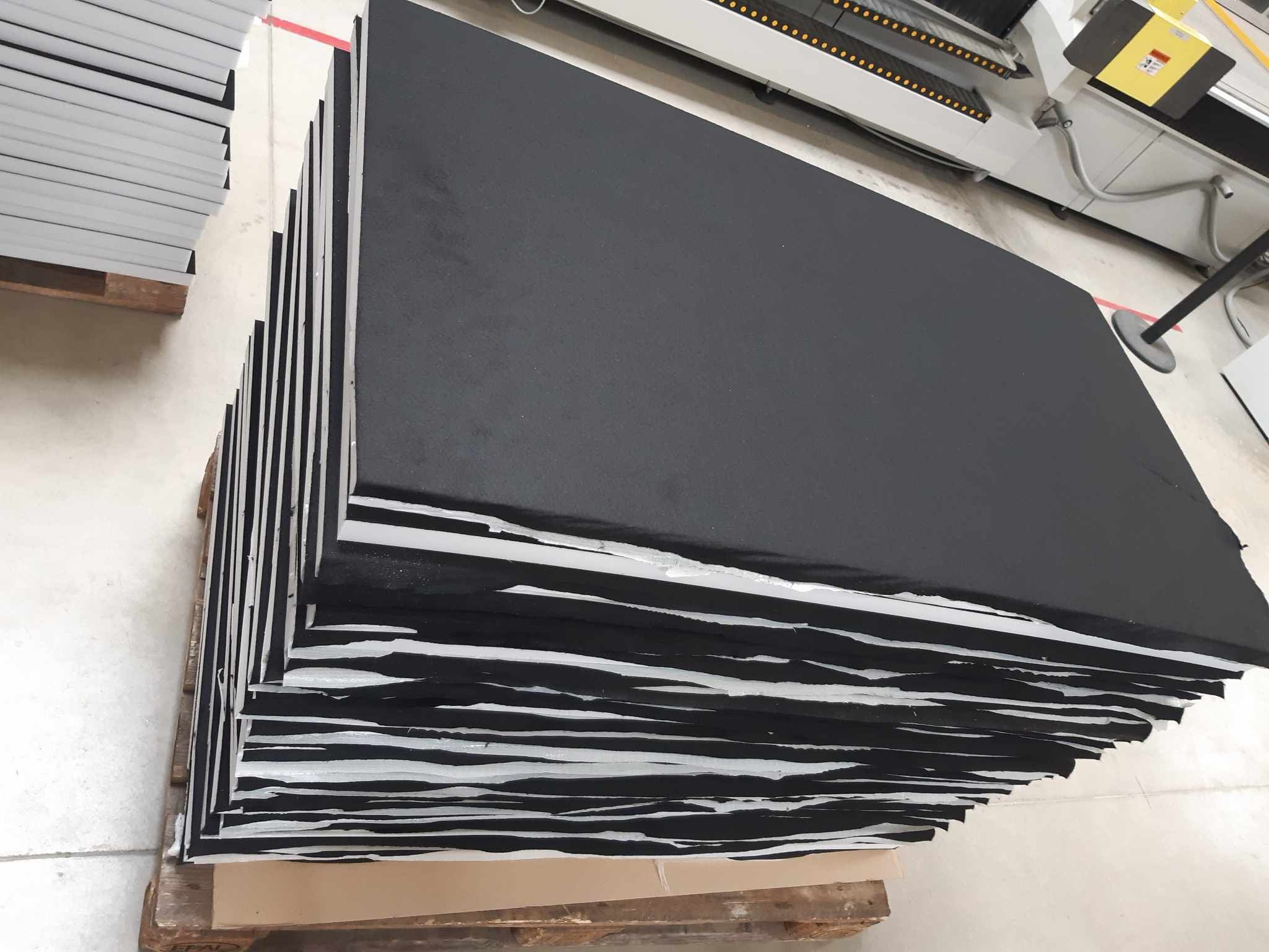 Vedlejší produkt výroby, různě velké obdélníky melaminové pěny.